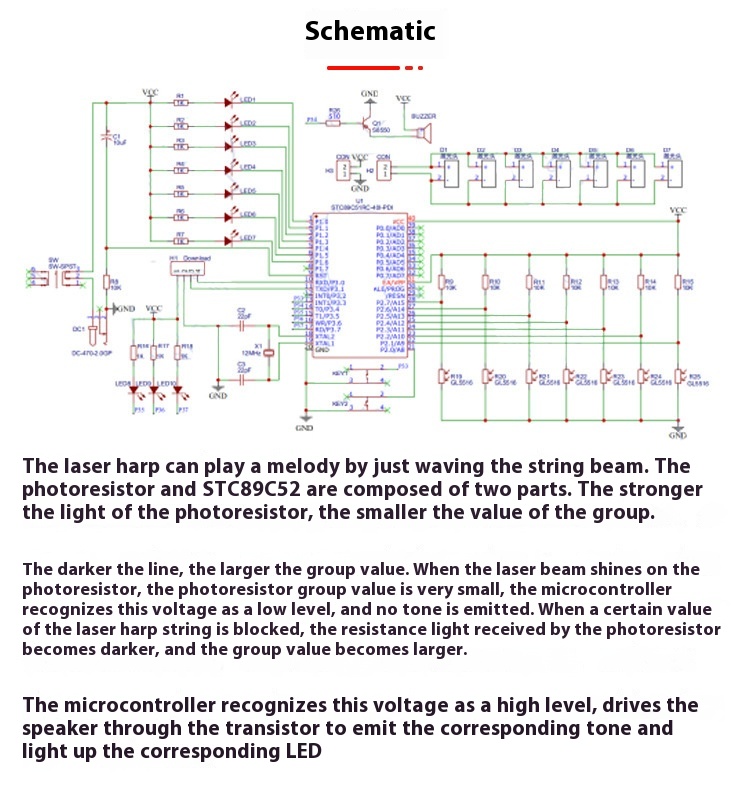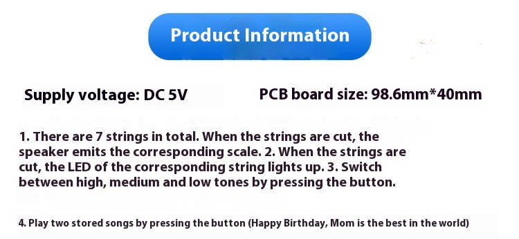 1. There are 7 strings in total. When cutting the strings, the horn emits corresponding scales.