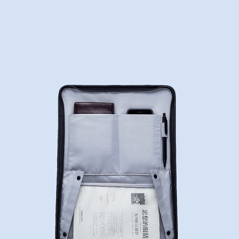 Internal structure of the bag: zipper pocket, mobile phone pocket, ID pocket, interlayer zipper pocket, computer insert pocket, camera insert pocket, removable baffle: with or without trolley