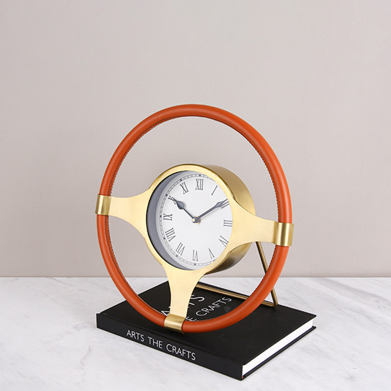 Metal Leather Steering Wheel Clock Ornaments Fashion Home Model Room Office Soft Decorations